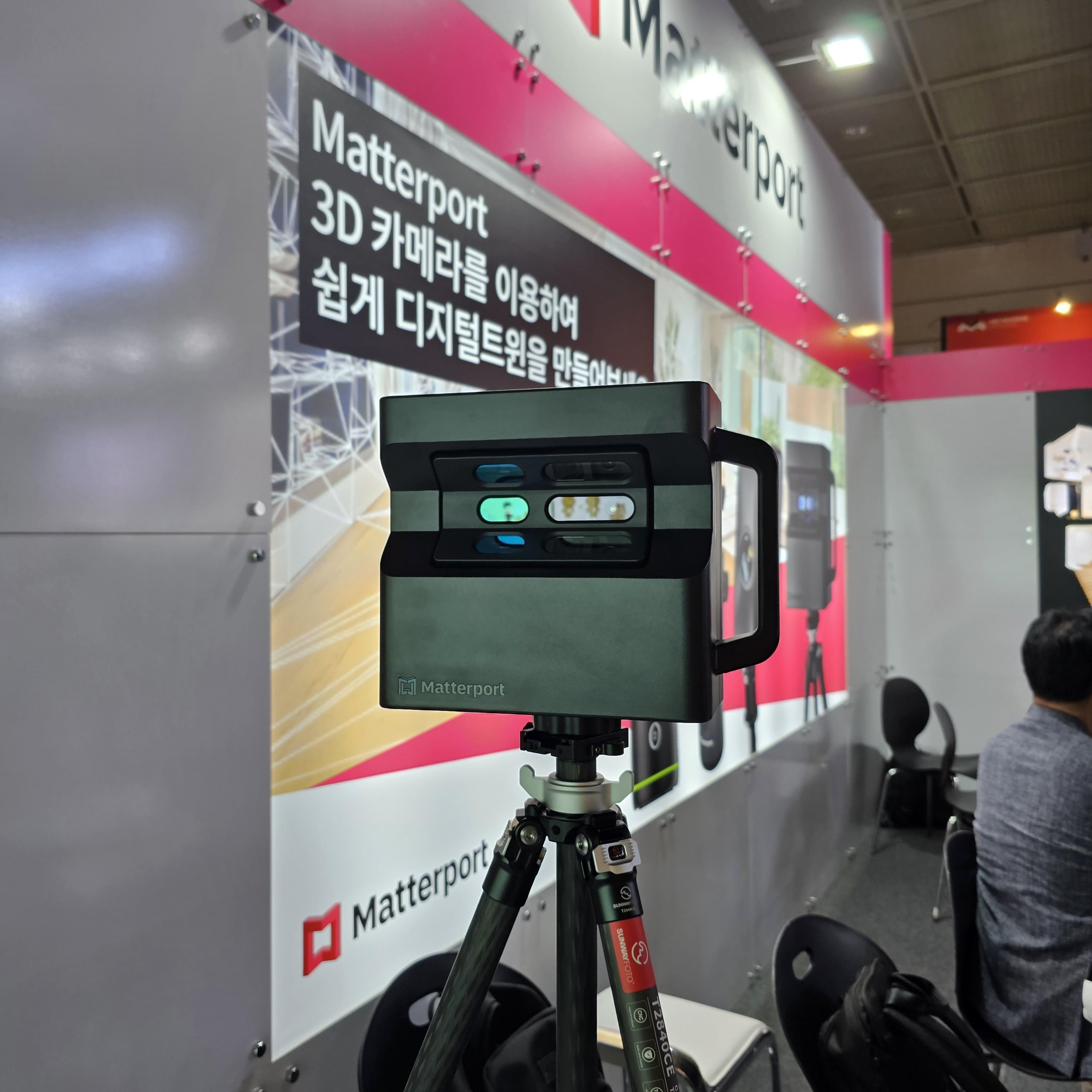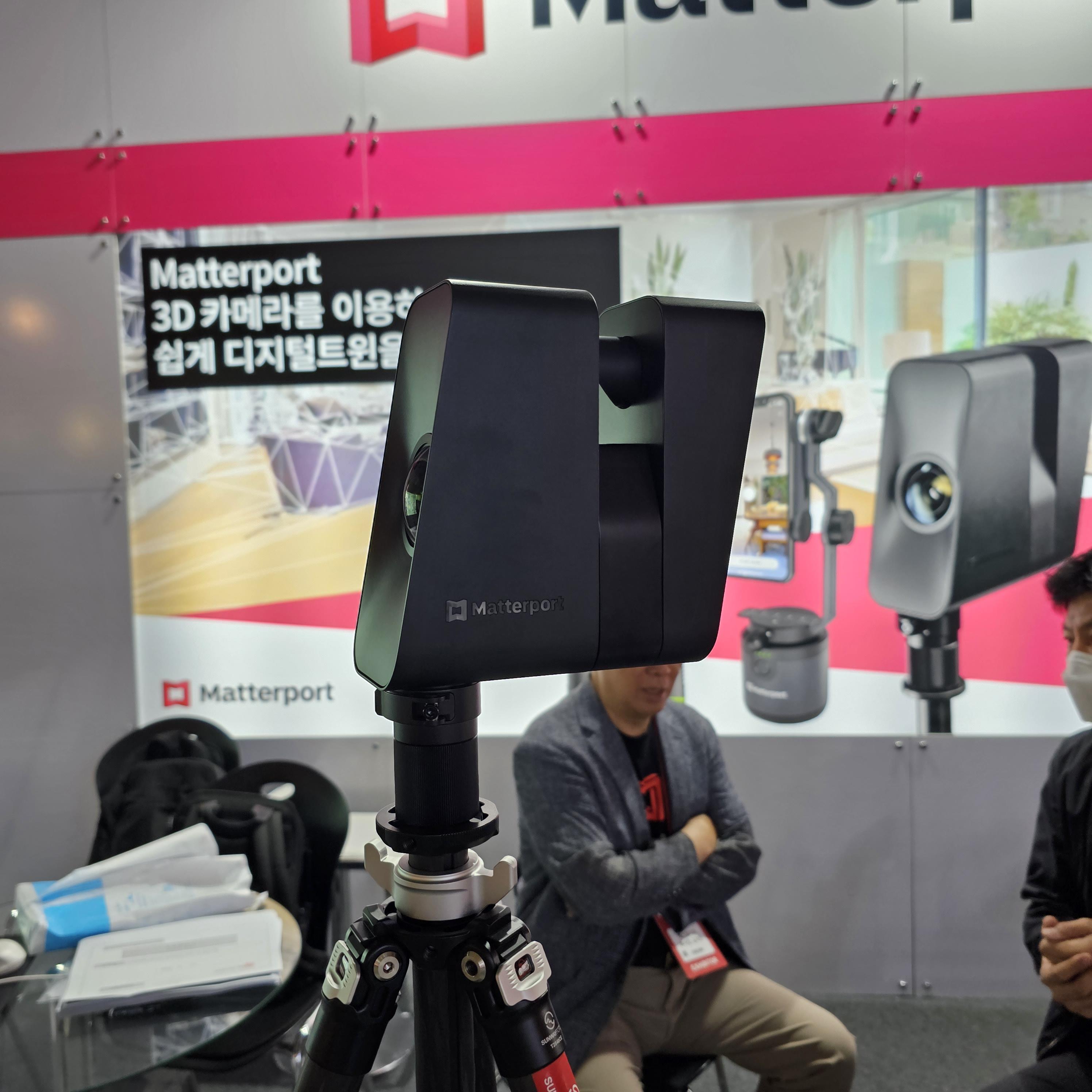 Matterport 부스이고 3d 카메라가 전시되어있다.