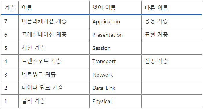 | 7 | 애플리케이션 계층 | Application | 응용 계층 |
