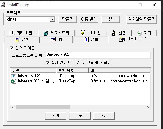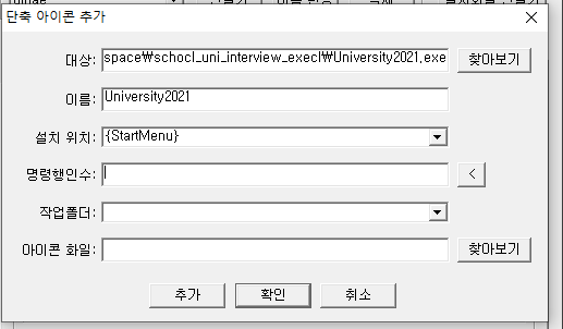 설치화일의 이름: (정한 이름).exe 으로 설치 setup 파일이 생성됩니다. (여기서는 University2021.exe)