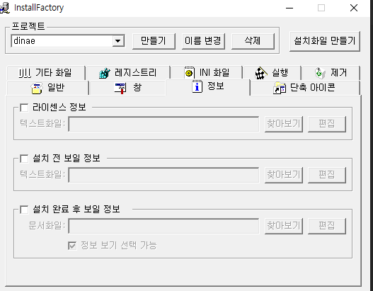 개발하는 프로그램 특성에 따라 레지스트리 편집, INI 파일 설정 등이 필요한 경우 아래 InstallFactory 메뉴얼을 참고하시면 됩니다.