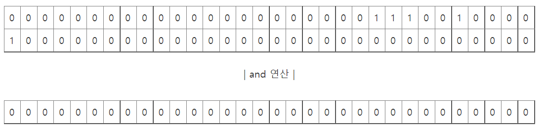 - 맨 왼쪽 비트를 1로 설정 후 정수와 and 연산.
