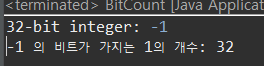 System.out.printf("%d 의 비트가 가지는 1의 개수: %d", input, count);