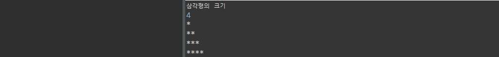별 문자 (*)를 이용하여 삼각형을 만드는 예제입니다.