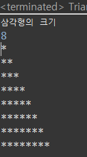 System.out.println("삼각형의 크기");