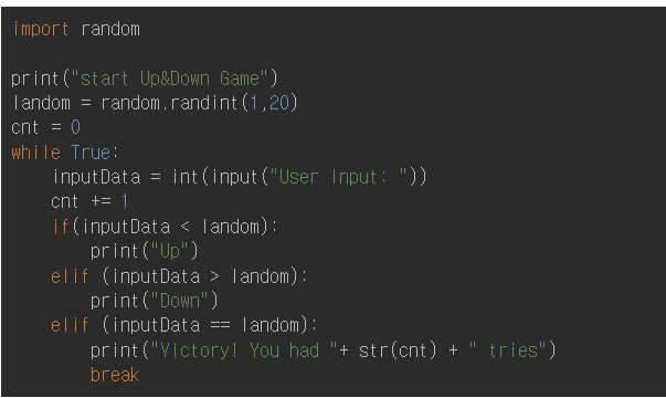 이번 파이썬 예제에서는 ramdom 모듈의 randint을 사용한다.